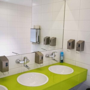 - Im Zuge des Umbaus vom Labor zum Hörsaal wurden eine RLT Anlage (12.000 m³/h), eine Kälteanlage (89 kW), eine Hochdruck-Wassernebel-Löschanlage (HDWN-LÖ Anlage) sowie eine Fußbodenheizung eingebaut
